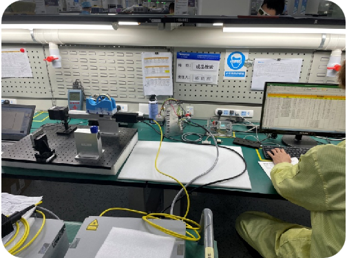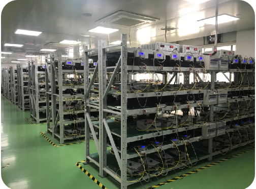 原檢驗工裝: 操作難度大,安全性低,檢驗可靠性差 升級后的自動檢驗平臺更加智能,員工將產(chǎn)品連接自動測試設(shè)備后,設(shè)備自行依照程序?qū)す馄鲀?nèi)部參數(shù)進(jìn)行逐一測試,包括電壓電流、整機線性功率、光斑直徑、中心透過率等項目。自動檢驗平臺減少了人為因素干擾,確保檢測的準(zhǔn)確性,保證了產(chǎn)品品質(zhì)可靠性。并且一人可同時進(jìn)行兩臺設(shè)備的檢驗工作,減少了人力投入,提升工作效率,F(xiàn)所需檢驗員人數(shù)僅為之前的一半。 拷機房信息化項目