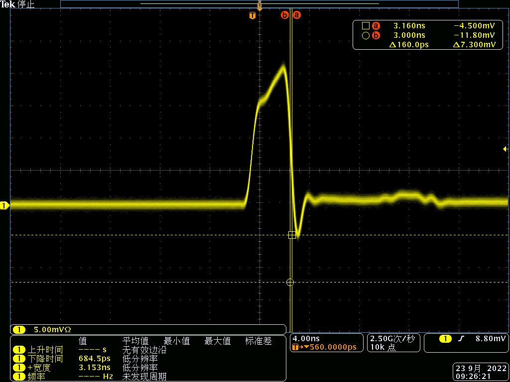 測試中,此類器件激光脈沖寬度可以做到低至5ns附近。